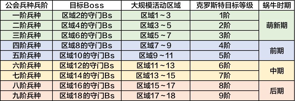 以此类推,五阶兵种为主的公会,最终目标应该是消灭区域10的守门Boss,进入区域11,之后在区域9~11内活动
