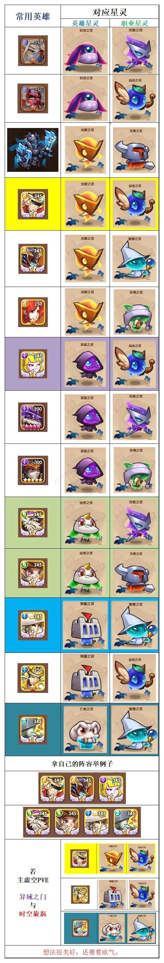 二、常用英雄星灵对应表