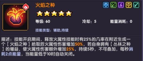 木系:生根,这个技能可以说是有点憨了,使用技能后无法移动,而且增加只有25%木属性伤害,木系职业基本上符文提供的木属性伤害已经非常高了,或许只能用在打桩了吧
