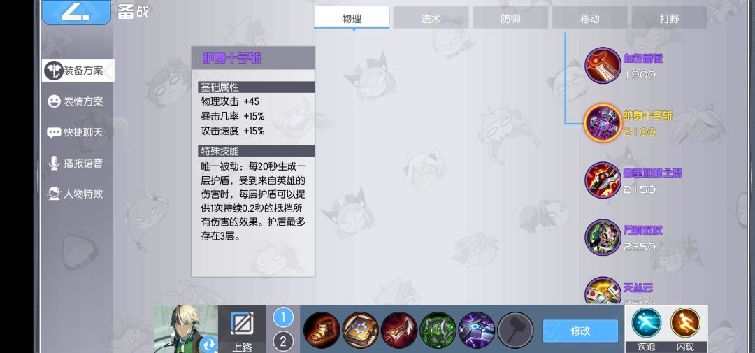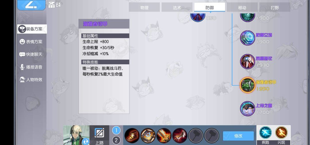 之后,个人比较偏向边带和游走支援的可以出绿甲,恢复就不缺了。接着补青虹剑,虽然大招有魔法伤害但还是要靠基础伤害来打。出完青虹,cd鞋可以升三级。
