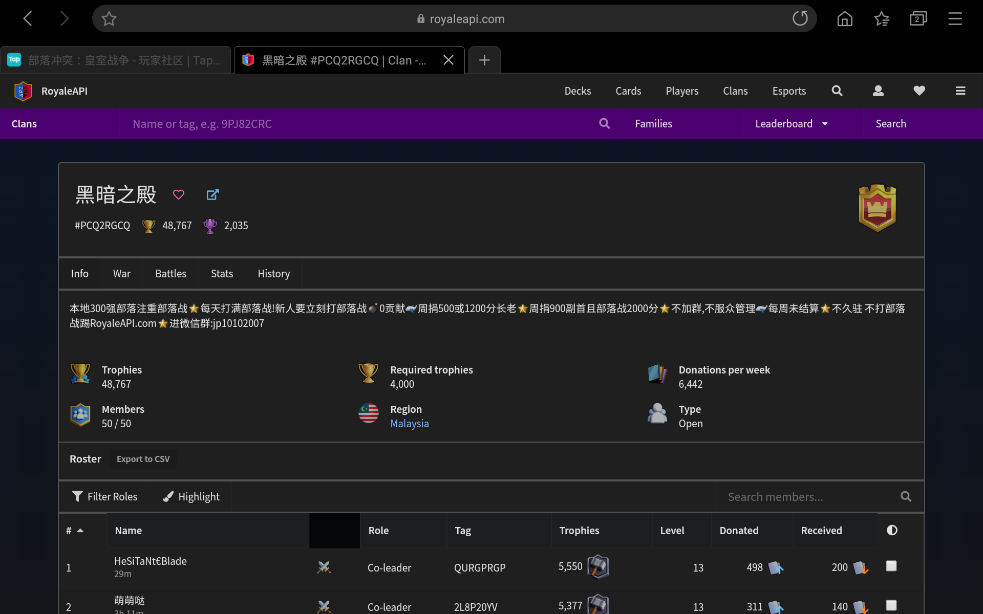 本部落招人,每次部落战保2争1,一定有传奇咯拿,只要你每天可以打满4场部落战就可以加入,来吧!!!