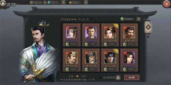 一开始我也还比较忐忑的,毕竟顶级武将是大家都追求的。虽然乍一看十连抽所需要的元宝数量不少,但是大家要知道,游戏中的任务活动送的元宝数量非常多,攒几天就够抽十次了。并且完成各种简单任务都会赠送武将的好感度,加之酒肆玩法,日积月累之后就能免费获得想要的武将啦~简直就是白嫖党的福音啊!