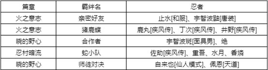篇章“火之意志”、“忍村暗流” 、“晓的野心”增加羁绊;