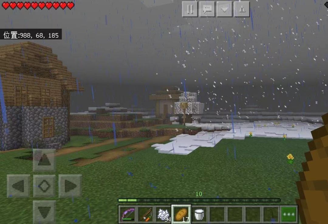 图二是逛该的记录,感觉有点好玩,一边是雨一边是雪,感觉还挺特殊的。偶尔的和几个朋友开黑一起生存造房子,刷装备打发时光还是挺好玩的。有时候偶尔在MC里保存的图还是挺好看的。还有就是光影特殊组件,更风景照一样,美术这方面算过关吧。