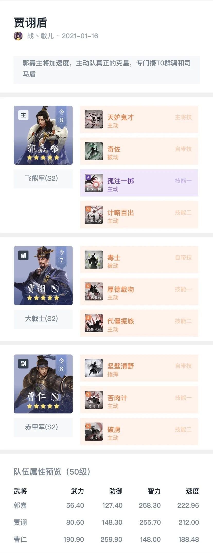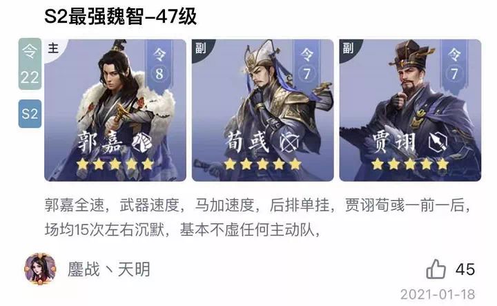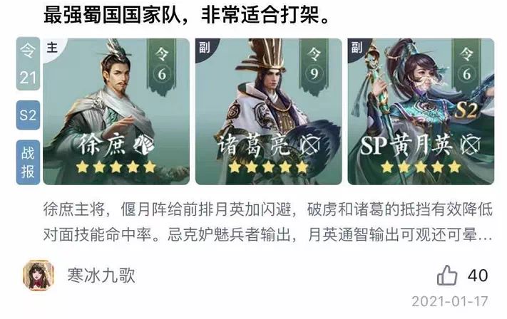 在本次活动中,各路配将大神主公根据魏、蜀、吴、群划分“国家队”,综合考虑各国武将的技能、属性、搭配等特点提出了许多新颖的配将思路。