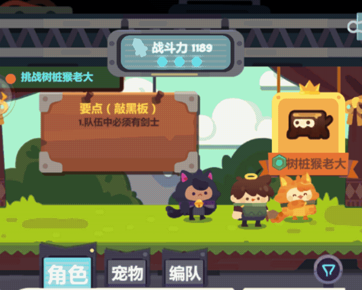第六个boos,我们是按照现在的强度是要有喵阵亡的所以,我们得对角色就行一些强化,将角色都升到至少11级便可以通关
