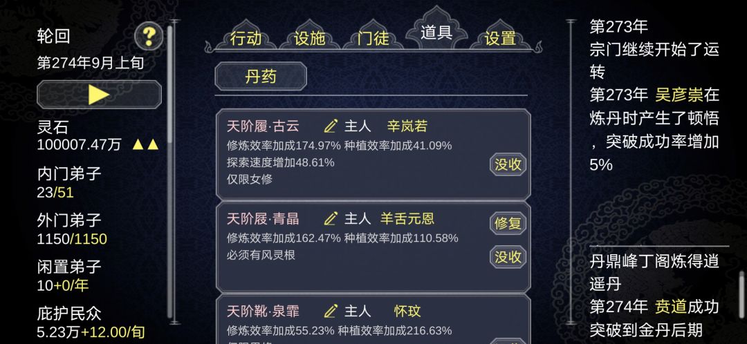 装备面板都变成丹药,