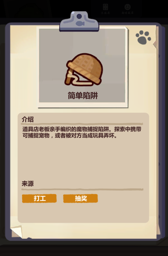 再完成主线任务中,我们将道具店升到三级,就可以免费获得简单陷阱,对宠物就行抓捕