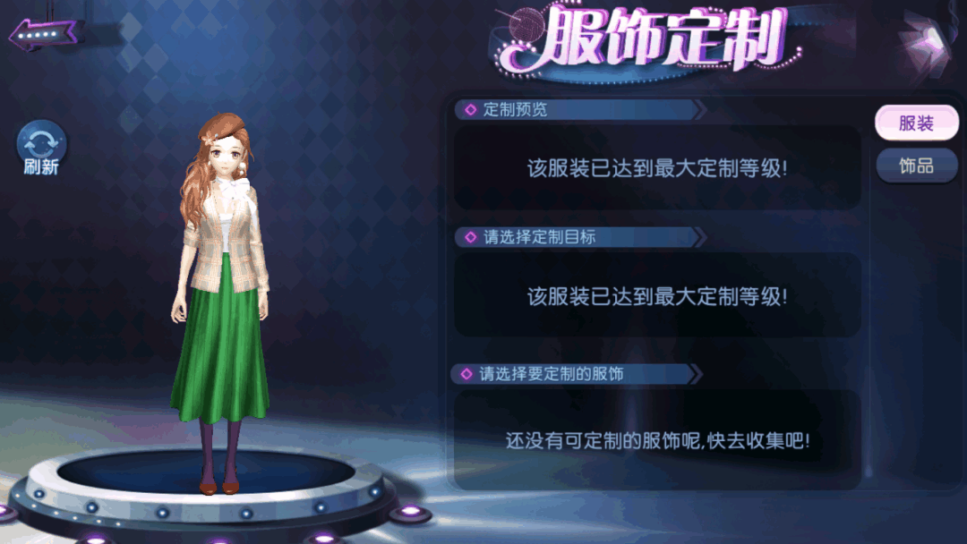 本期上新的服饰为【复古风情】,整体采用宝石绿和白色为主色系,头顶的褐色贝雷帽,温婉可人,白棕色的格子西服简约修身,透露着满满的英伦学院风,纯色的宝石绿长裙与暗红丝袜、平底鞋,撞色的存在感降低,红配绿也能穿出时髦感。