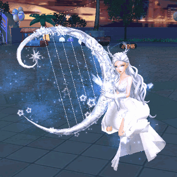 本期上新的动作饰品为【梦中的竖琴】,饰品整体精致梦幻,以银白色为主基调纯粹如玉,线条闪烁的琴弦镶嵌于月亮形状的琴框,婀娜的舞姿伴随着琴弦的拨动,演绎出星河下梦幻般的景致,营造一种华丽梦幻的氛围~