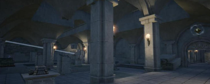 玩家进入地宫里面就会看到棱镜,这时候需要将棱镜中的光线反射在进出口大门上方的小洞中,才能成功开启地宫里面的大门。以上的操作一定要先移动发光的棱镜才能引起后面的光线反射。