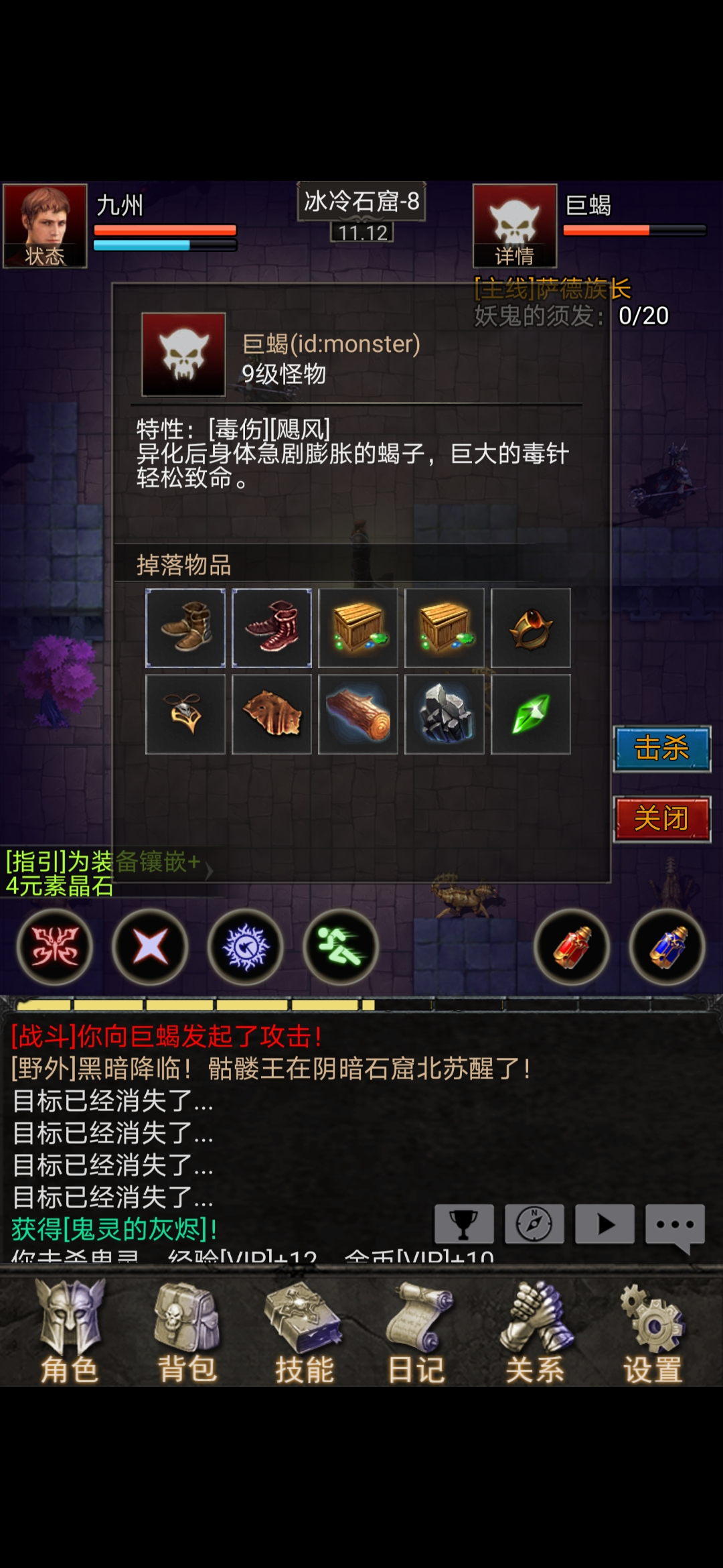 冰冷石窟--是玩家的第二道关卡,里面有鬼灵和巨蝎两种怪物