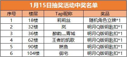 当然,还有每周的开奖时刻,在上周的第二期【答题闯关活动】中,上知天文,下知地理的道友“莉莉丝”率先做出五道题的正确答案(甲丙 乙 甲 甲丁),成功获得随机角色立牌*1,“岚”、“醉韵灬青城”等五位道友获得“明月Q版钥匙扣*1”
