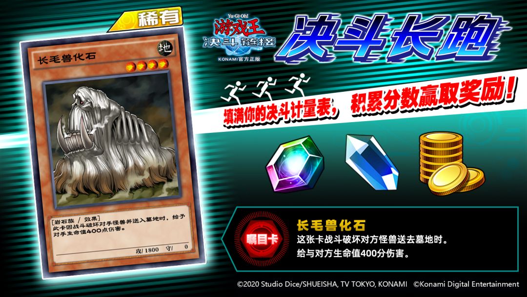 根据你在活动期间获得的分数,我们还会发放累积奖励。 本次的主要卡片奖励是"长毛兽化石"!努力决斗,将它收入囊中!