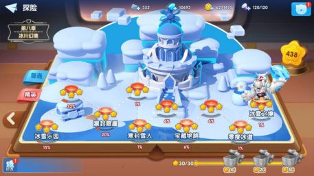 “探险”新手熟悉游戏的玩法,闯关能获取前期重要的经验以及装备外,达到通关熟练度还可以增加属性。