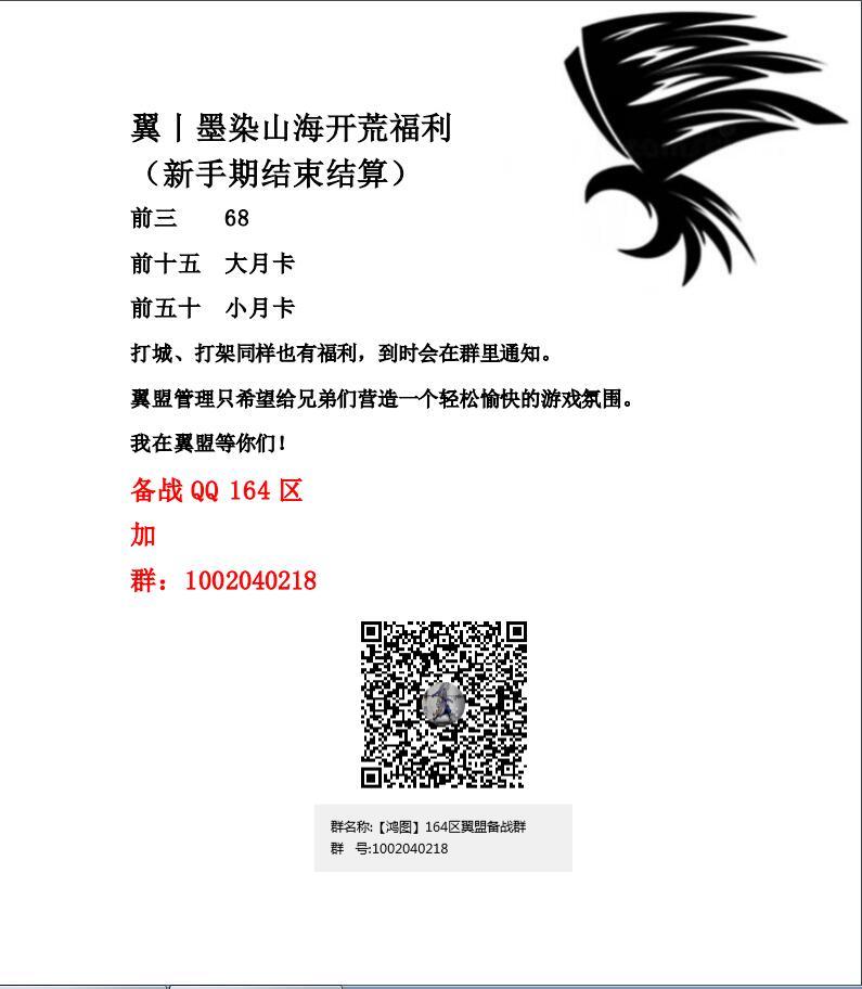 翼丨墨染山海诚邀各路心老玩家一起备战QQ164区