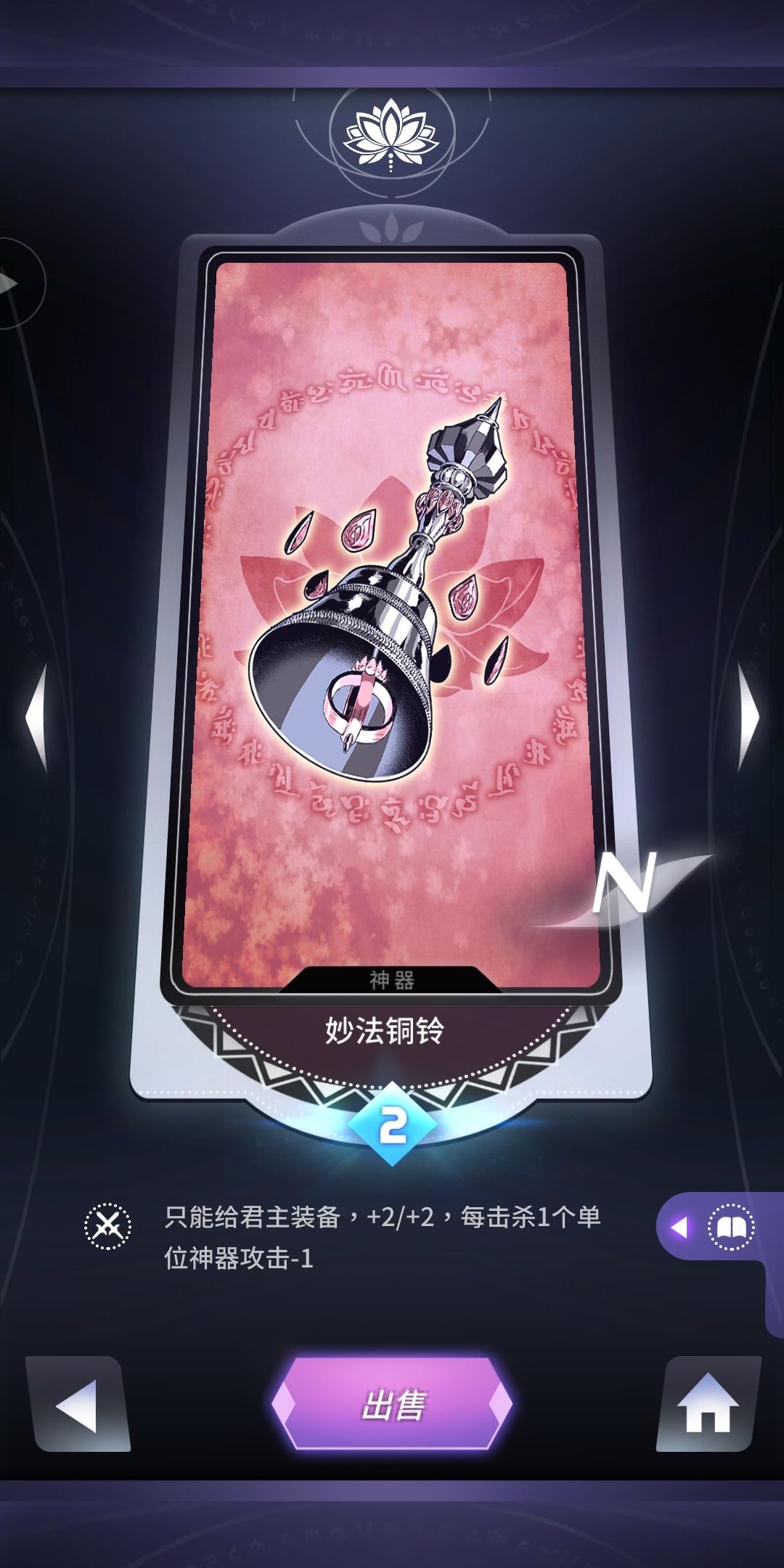 修罗道特有的君主神器,多用作打对面君主抢血。2费最高可以打6点伤害。并且前期挂上带两点攻击力。也让对方的低血量生物不敢攻击我方君主。