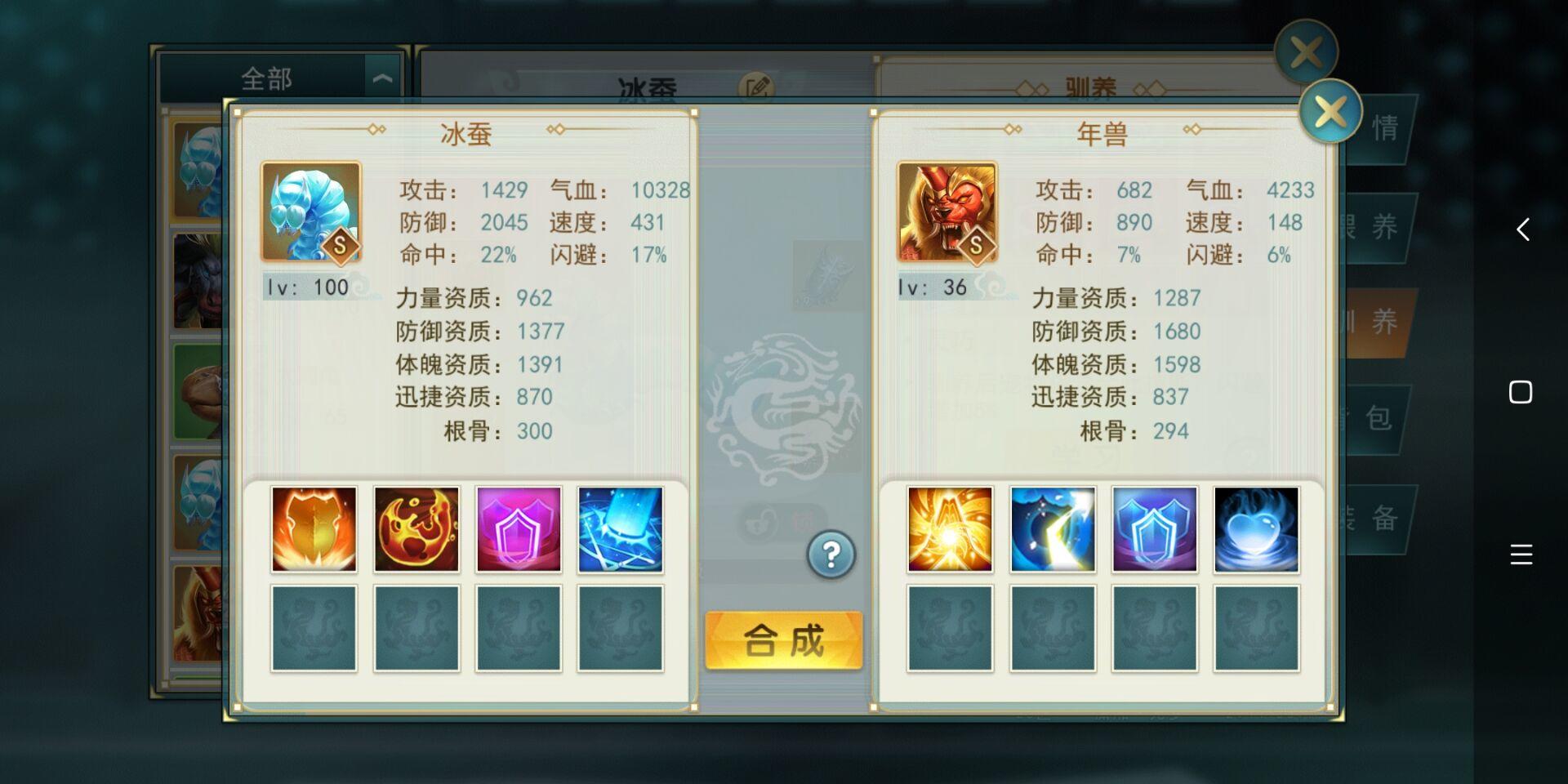 三个特技,两个技能,无比满足,也祝各位能合到自己想要的宠物