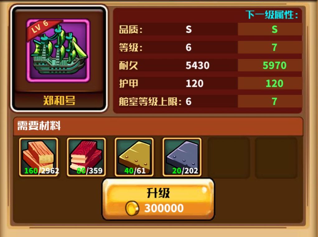这里再夹带一点私货吧,我个人认为,郑和号虽然是前中期能造的船,但实际上并不适合前中期用。郑和号最大的特点是四仓和航速高。高航速需要高级的机械专家才能体现,前期的机械专家等级普遍不高,高航速这个特点很难体现出来。另外,郑和只比卡拉克多了一个仓库,可是造价却是卡拉克的好几倍,前期造郑和号的性价比真的不高。在我看来,郑和号最适合的是后期银已经多得用不完的时候。到了后期财大气粗,郑和号和卡拉克都等于不要钱,这时候就可以造几艘郑和,方便挂机囤货赚大钱啦。所以小伙伴们不要看到有的大佬说郑和要至少四艘,然后就真的等造好四艘郑和再继续走剧情,这会导致前期的银消耗太快,影响圣炮和盖伦,也就影响了整个游戏的进程。前期的银还是拿来提升战力比较好