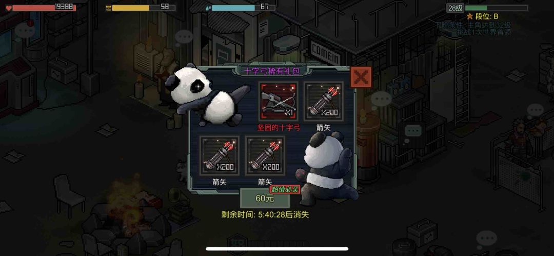 7.稀有礼包,啊呸,稀有毛,一把29级的弩,600支箭你们要卖60软?一堆烂材料加在一起还不到200个敢要30软?谁给你们雷霆的勇气?梁静茹也不敢给你们这样的勇气吧?