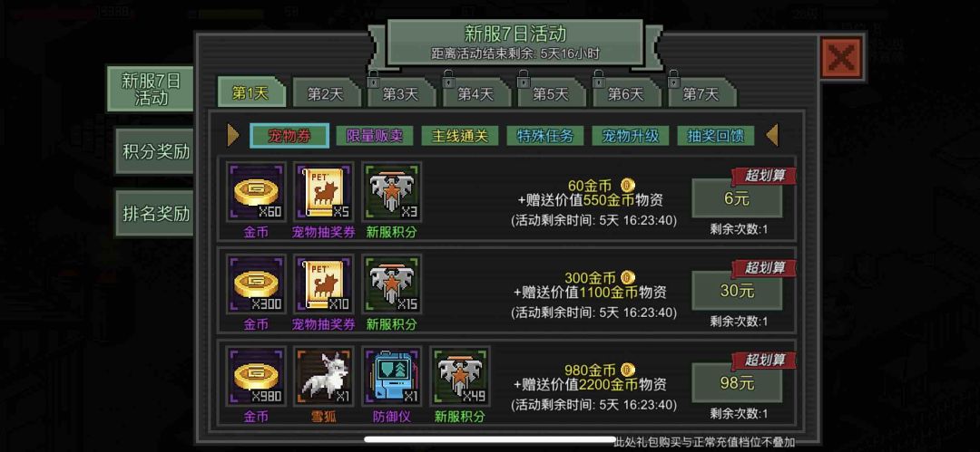 如此情况下,本着趟雷的想法,开服第一天小氪了近200块钱,我来告诉你们那些地方坑了我这笔钱: