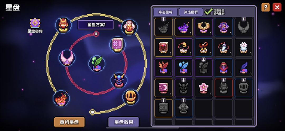 星群效果 需要同时拥有某一个星群的所有棋子,这个不用急,不出一个月,大家都会有的。