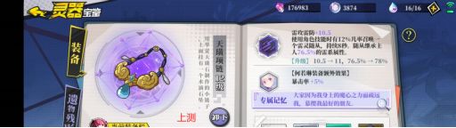灵器:雷伤、雷灵配合雷鸟自身就有增益不必多说,【清净琉璃瓶】对反伤的增益配合百战更是天作之合,这里【双鱼温玉】的选择是个摇摆【晚春藤】也是个非常不错的选择