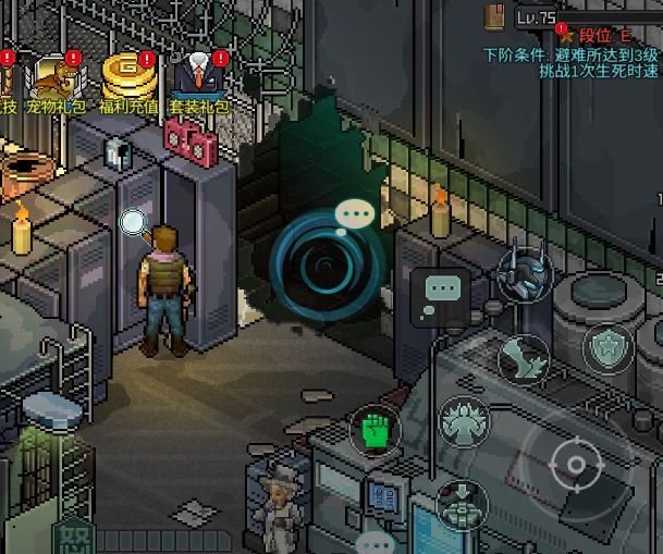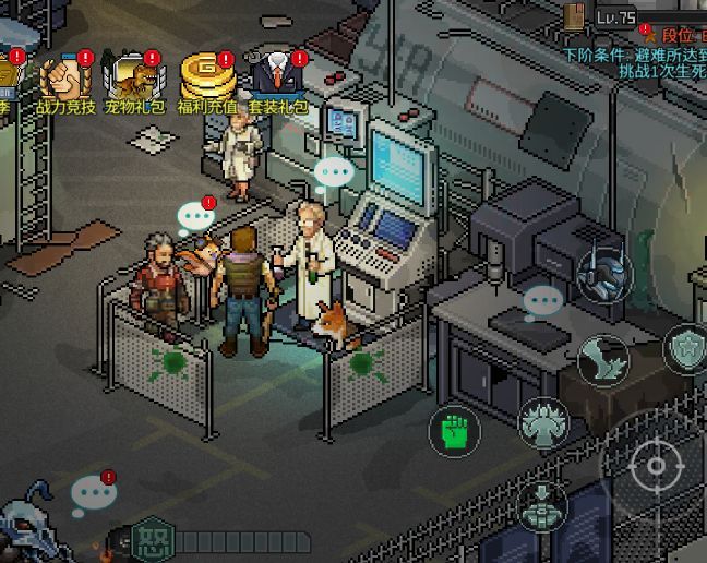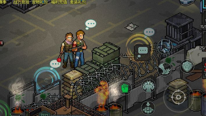 然后回到标着“像素危城”大字的沦陷区地图,它的旁边是邮箱,再往旁边的摩托车,就是进入各种难度关卡的本体了,升级可以增加可以快速探索的次数。