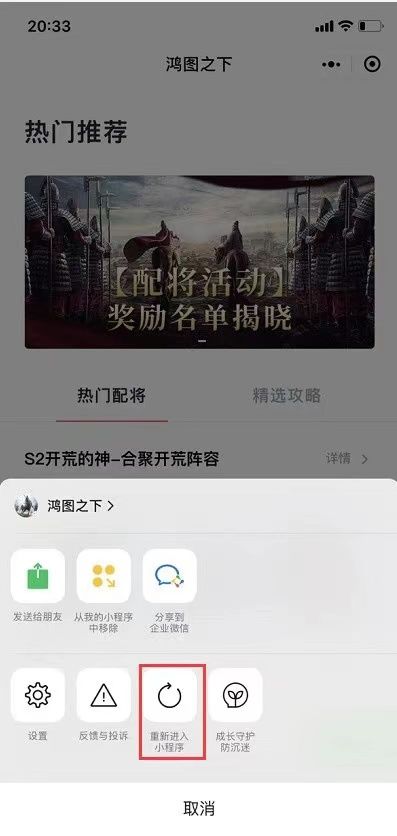 如果各位主公进入小程序后无法看到活动,可以通过重新进入小程序刷新。