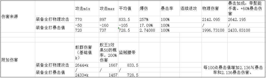另外,蚁群的伤害,是根据物理攻击、法术攻击决定的,物理攻击越高,蚁群伤害越高,吃暴击。