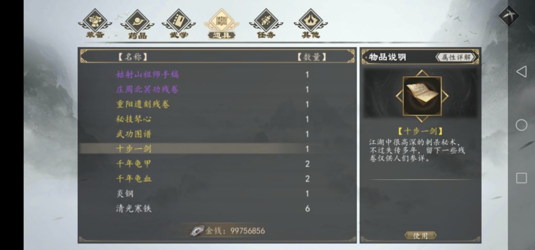 然后再点拜谒,可获得青霜洗剑录