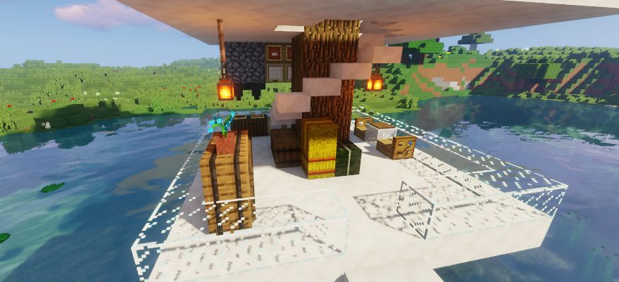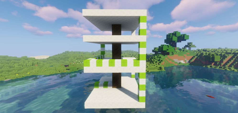 首先,我们在浅水滩使用橡木原木做出2×2的树干,水底可以使用橡木延展树根