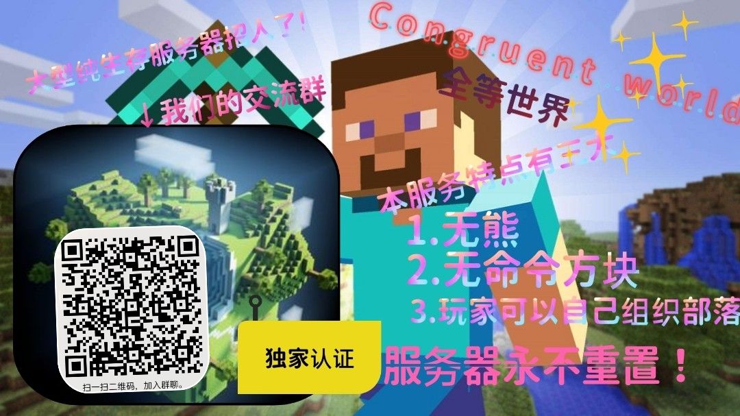 【号外号外】全等世界纯生存服务器正式开始招人,完全可以养老,目前处于开荒期