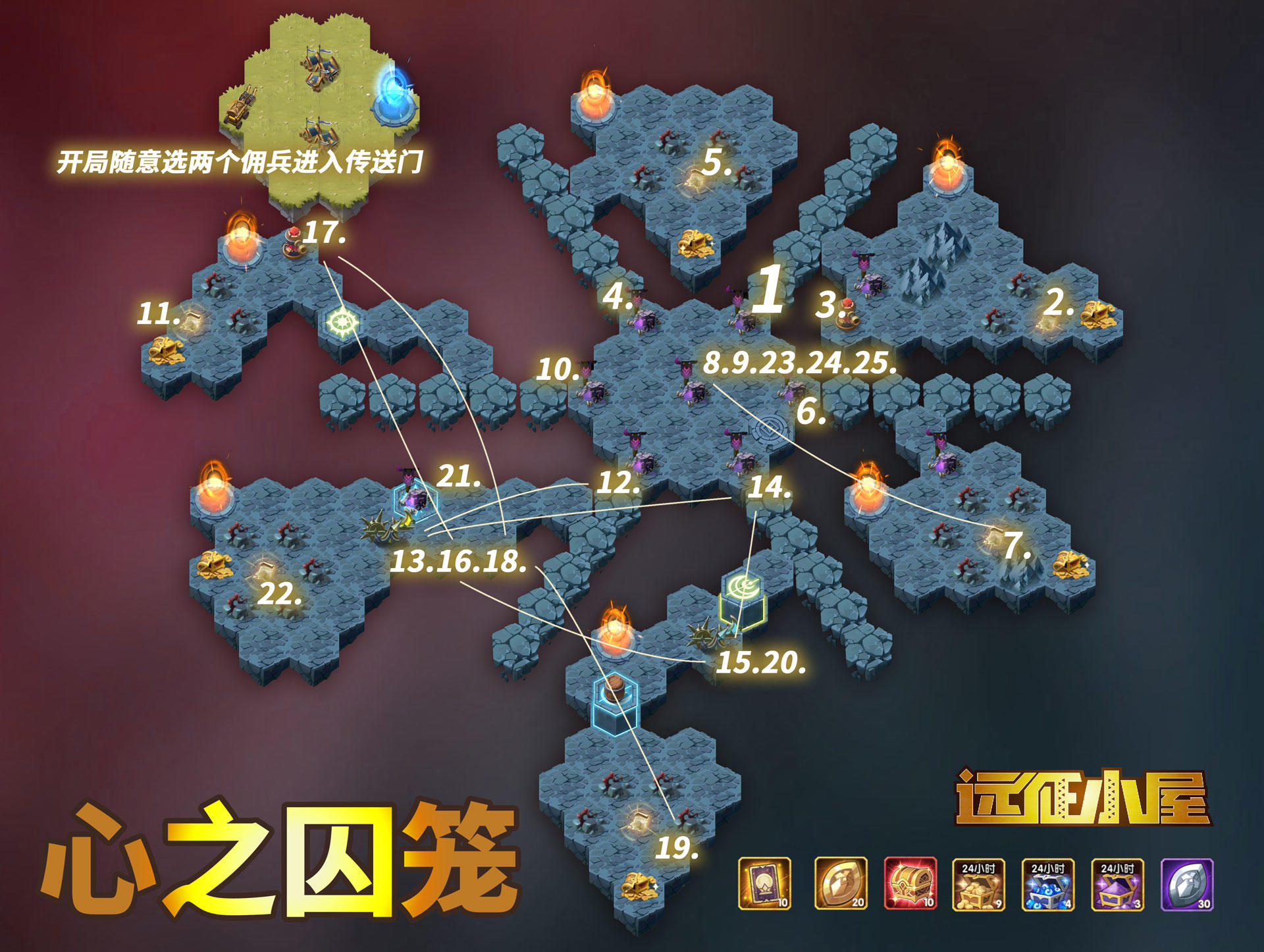 地图机制为每打一次怪物营地,目标点边上的荆棘就会多张一丛,虚线地块就会减少一格。