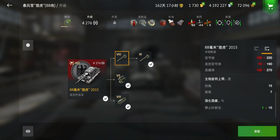 (如果让88猎虎的车体装甲加强到和现虎王一样,八级房里一定会变成盗猎大队。)