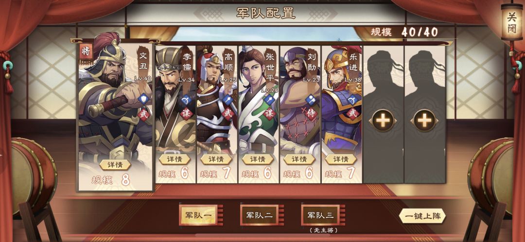 其中,张世平和刘勋都可替换,反正一谋士一投石车就行,张世平的好处是费令少,因为没军师,令比较吃紧。