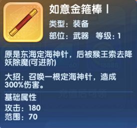 金箍棒的伤害也是300%。攻击180、范围70,乍看之下,属性是平平无奇的。