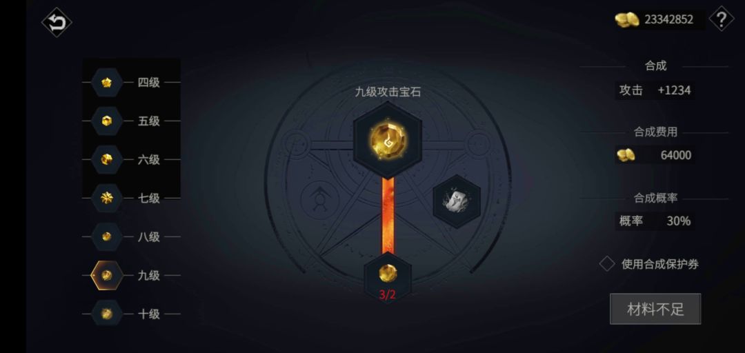 7级宝石合成成功率70%,8级60%,9级30%,10级20%——实际成功率更低,碎个不停。建议各位攻击和增伤宝石都留一套(12个)