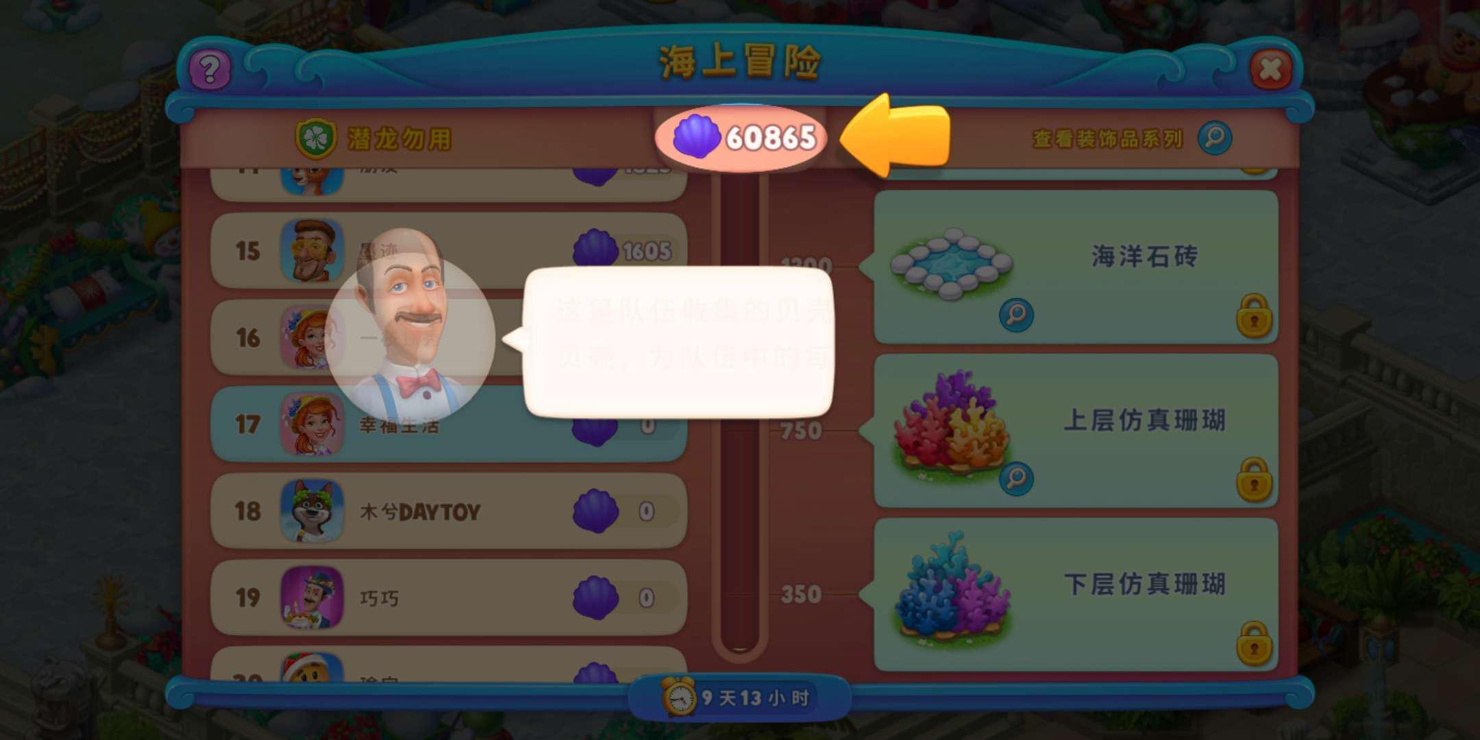 这是第二次以元素方式出现的收集方式,老玩家都轻车熟路,萌新玩家是不是有点懵懵的,这次咱们主要收集上图中深蓝色的贝壳元素,每关多收集点,为部落皮肤做贡献。