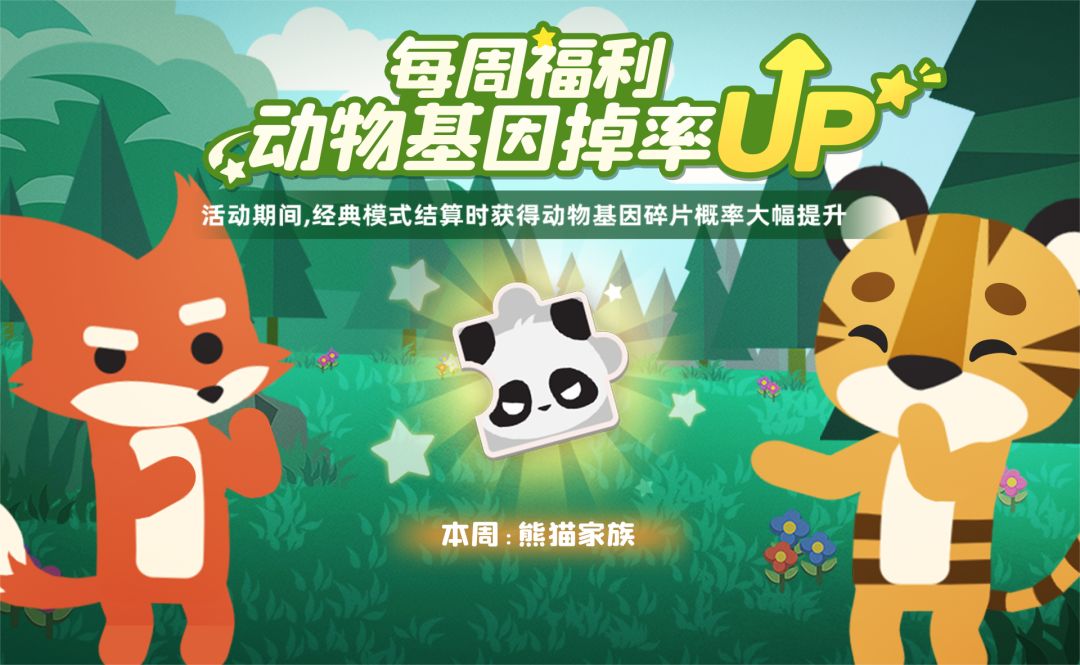 在每周的周末两天,玩家通过经典模式获得的“幸运动物”基因碎片概率提升