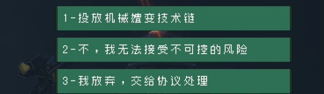 第五星:失坠的乐园,收割。 神话之死,防御值清零最后共生。 星约操纵者,正常共生。 机械嬗变,对话框投放机械嬗变技术,最后选择机械嬗变。