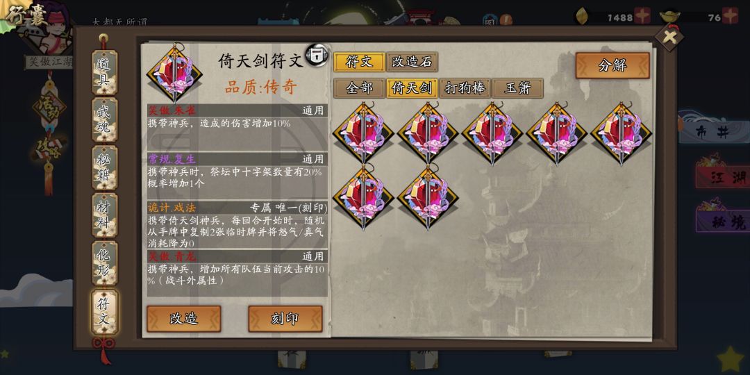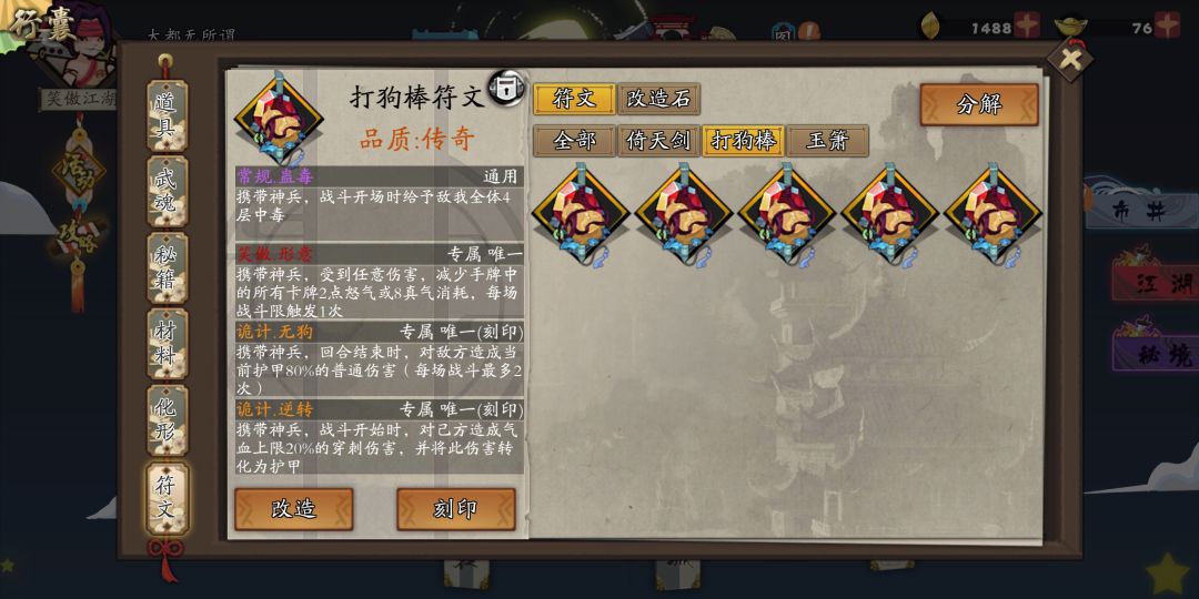 只要天下无狗打上连携加转化,回马枪打上连携就随便打了,强无敌。