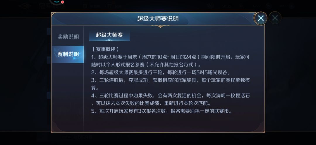 老子花500竞技币报名的超级大师赛一局没打自动消失了,这还没到