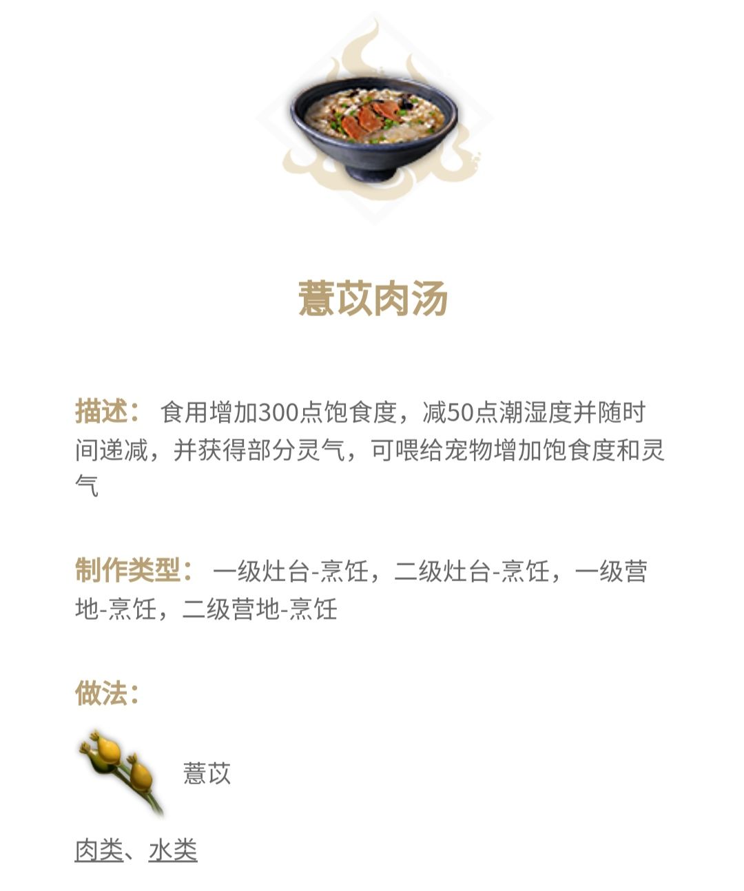 推荐理由同上,只需要任意一个肉加两个调料就可以制作(薏苡真的很重要啊)