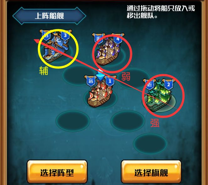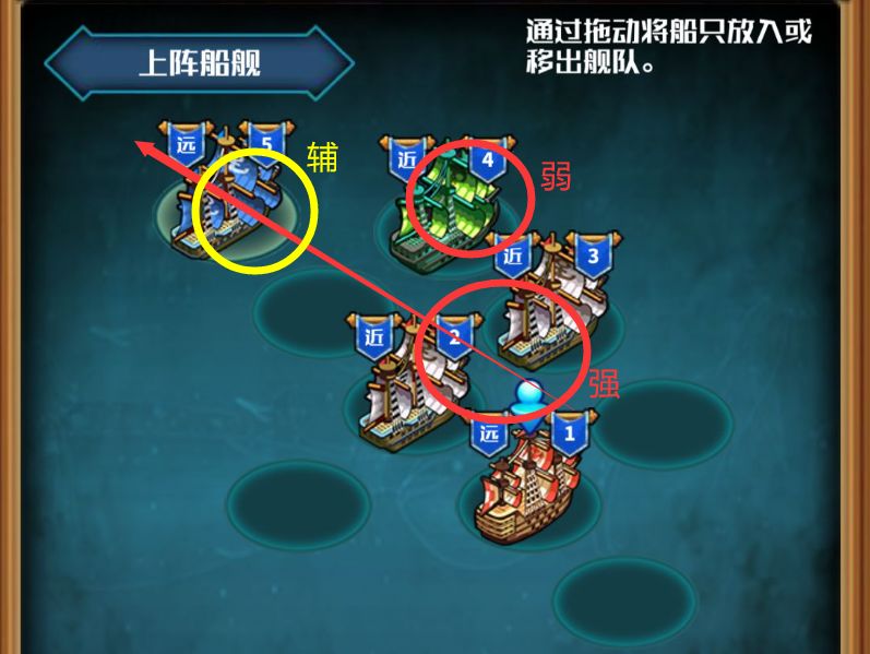 当然啦, “强-弱-辅”并不是唯一的布阵思路,例如打ss港就基本用不上。这是因为ss港的旗舰是肉搏船,这要求我们能抗住足够的时间打出米提炮才是最重要的。对于其他的主线支线也欢迎大家多多尝试,多玩几次也可以总结出自己的规律的。