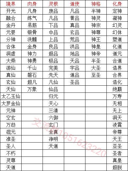最新完整版境界、门派、道侣表格
