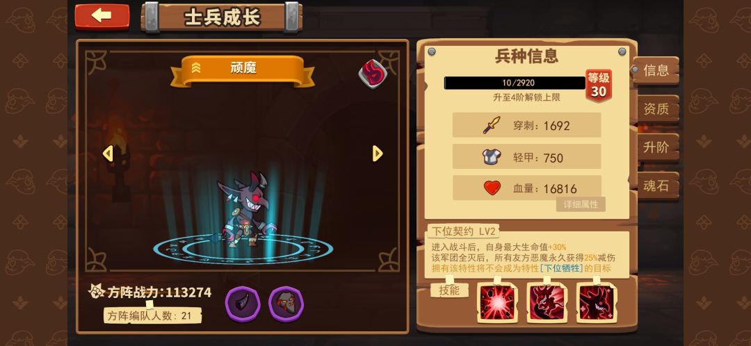 万金油,后排克星,可以扑到敌方后排身上,使其不能攻击,在死亡后还会发生爆炸,非常稳定的切后排能力,是其他刺客不能比的,切后排没的说,死亡后,发生爆炸,并会为其他恶魔族加减伤。