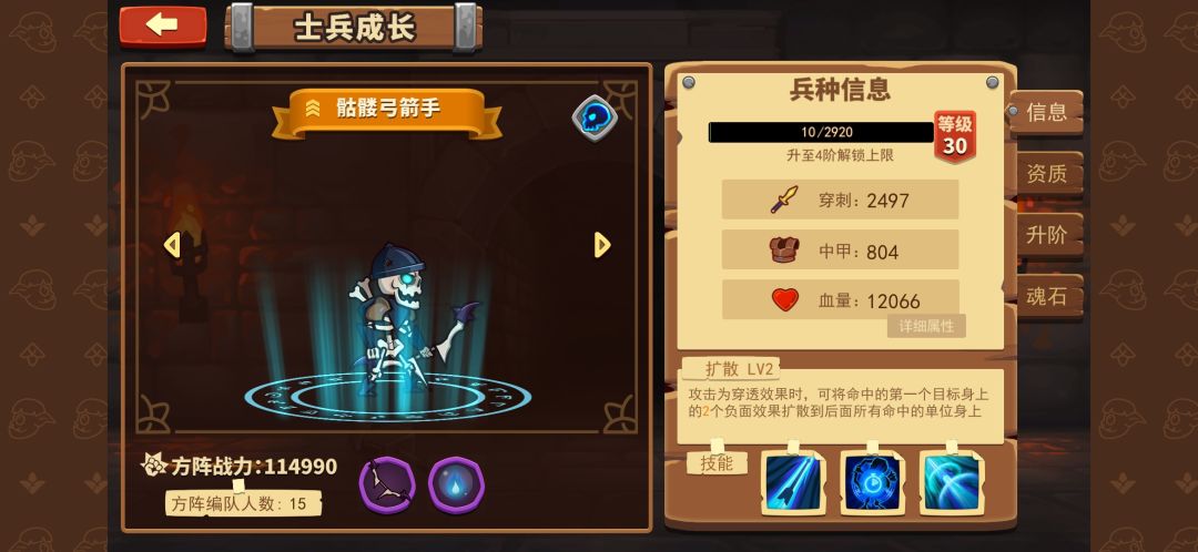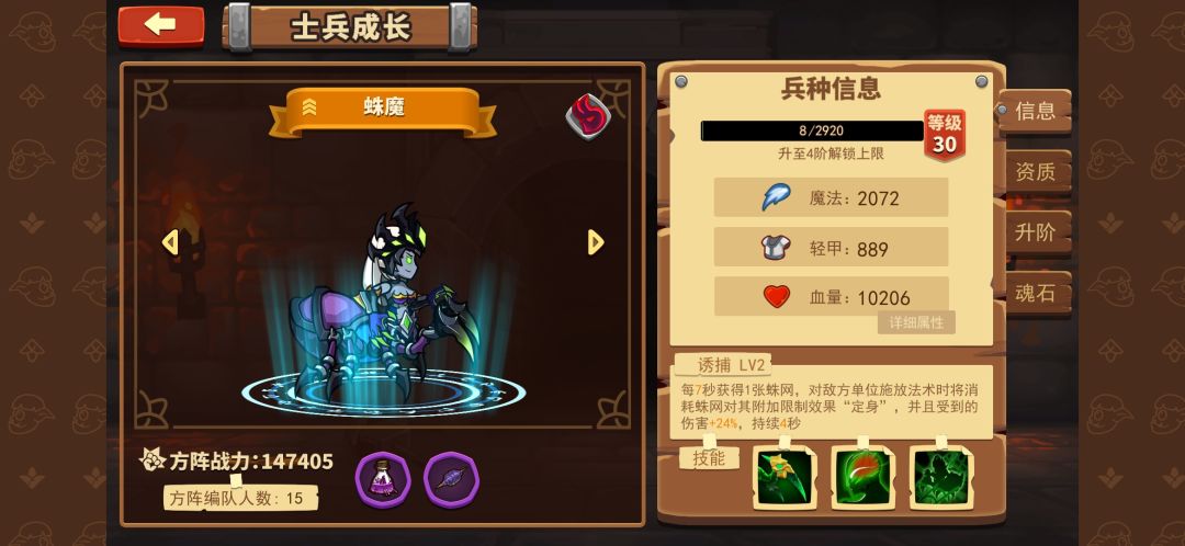 能够网住敌人使其不能前进,并能增加敌人伤害,并能使敌人中毒,可以配合炮兵小队和骷髅弓箭手,是据点不错的辅助。