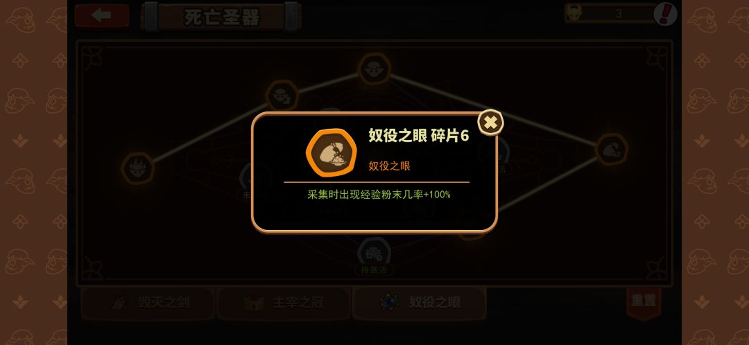奴役之眼碎片6,可以使你挂机时获得粉末,粉末可以合成经验书,是获得经验的重要来源