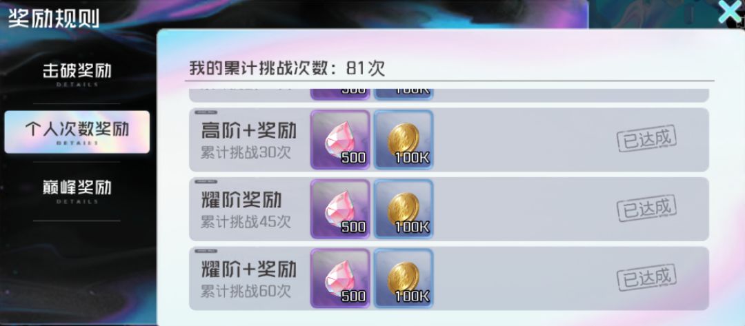 当然异界讨伐的奖励还有巅峰和次数奖励,这里攻略君就不多言表了。